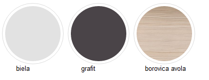 Farebné prevedenie korpusu a dvierok: biela / grafit / borovica avola