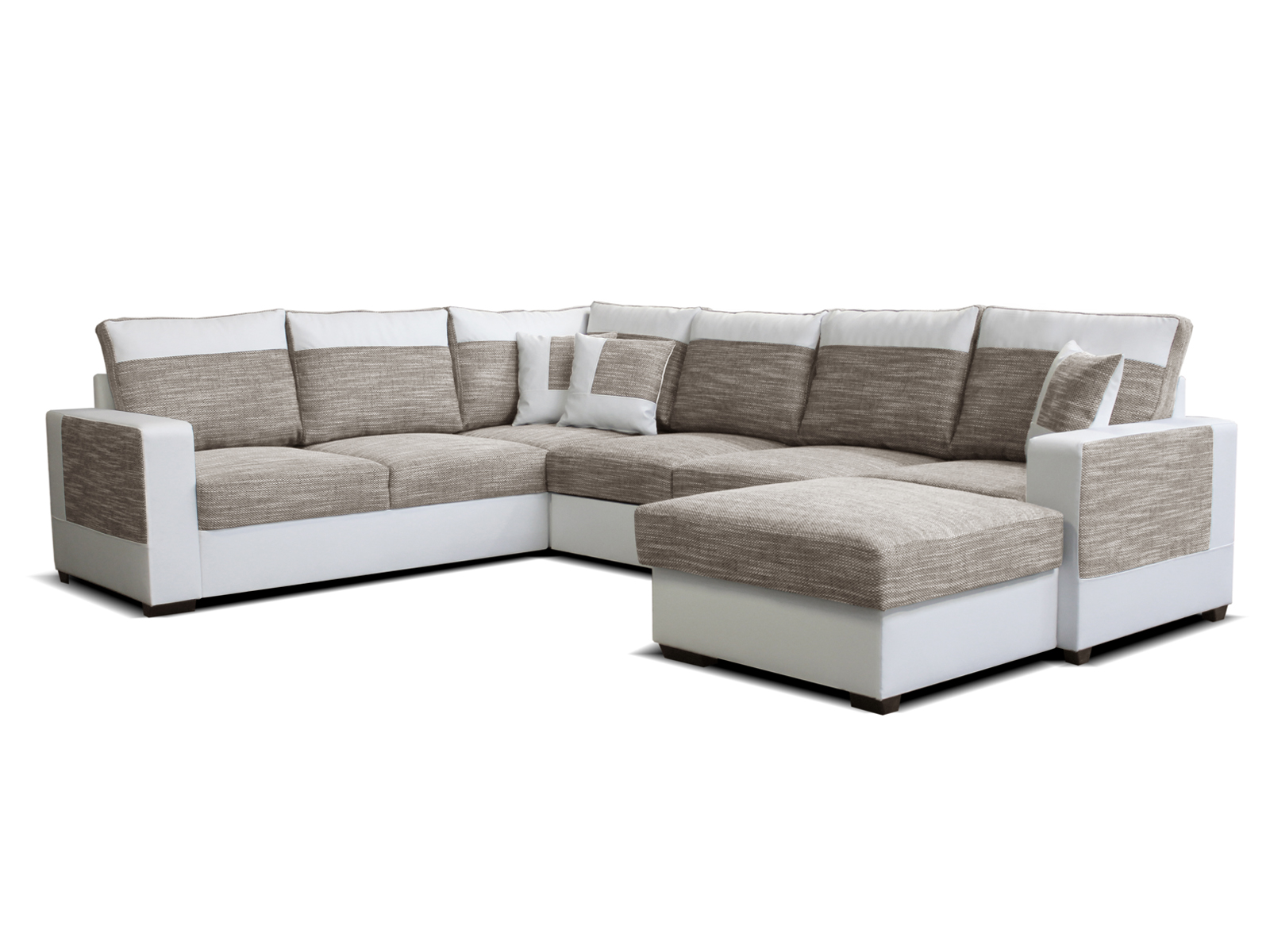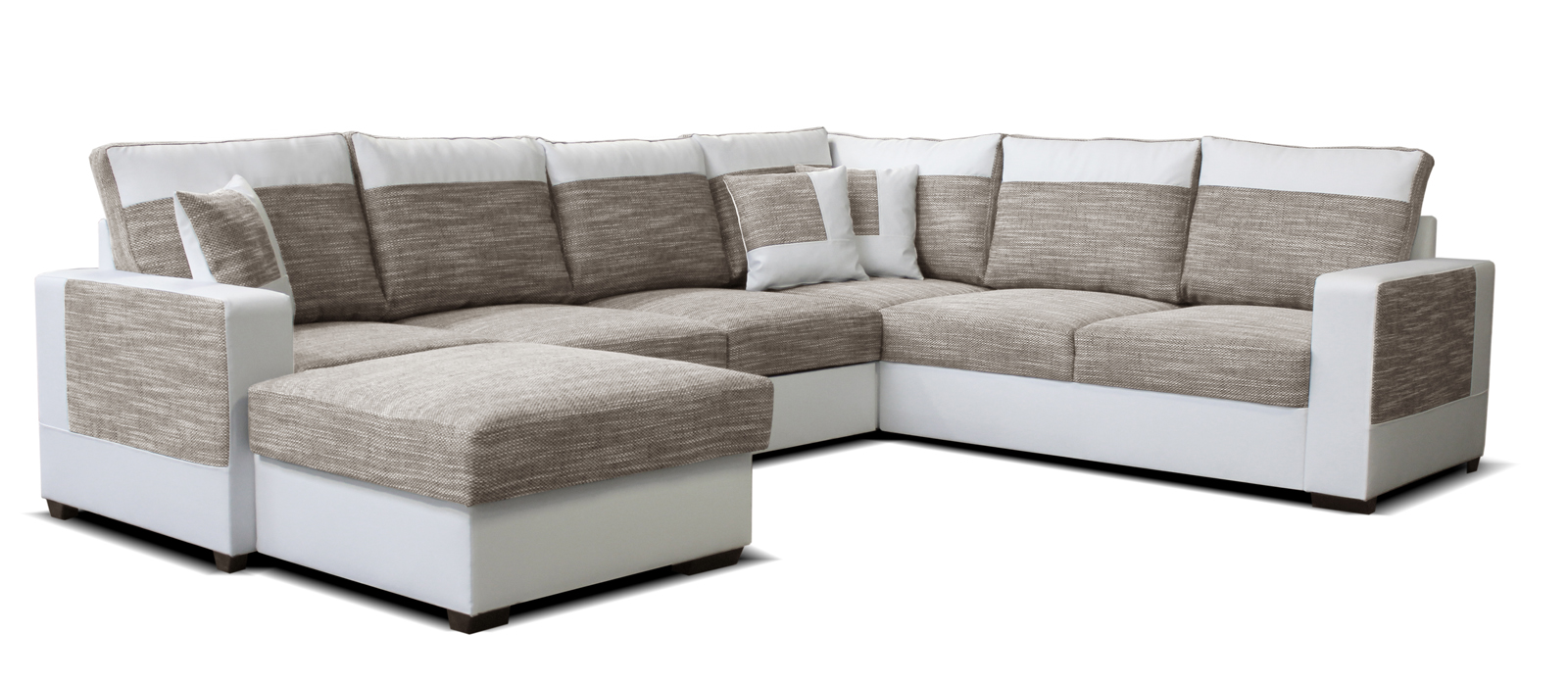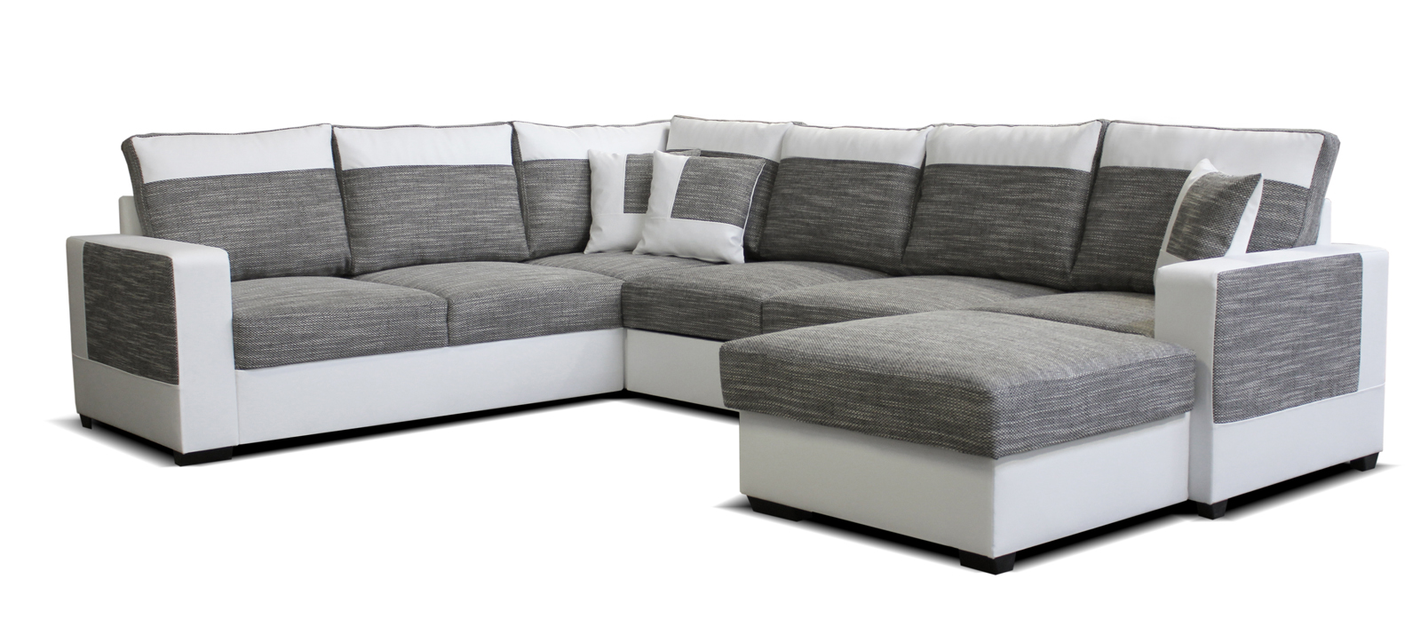 Rohová sedačka U Mega 2+A+2F+L (sivá + biela) (P)