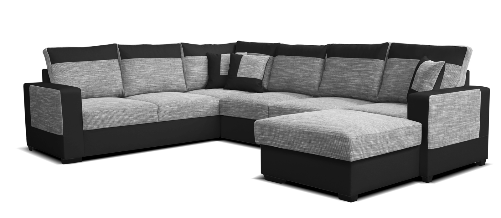 Rohová sedačka U Mega 2+A+2F+L (čierna + sivá) (P)