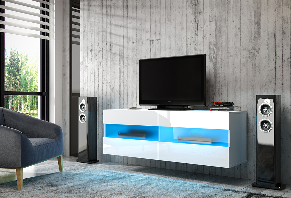 TV stolík/skrinka Rita (biely lesk + biela matná)