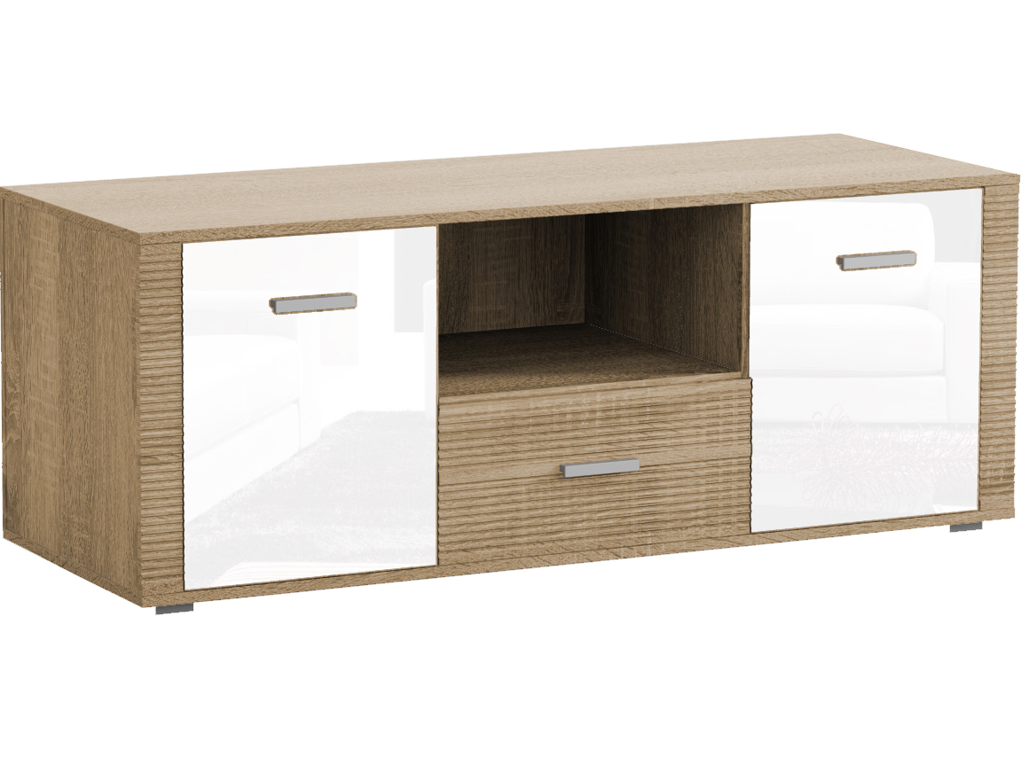 TV stolík/skrinka Savona 2D1S (lesk biely + dub sonoma)